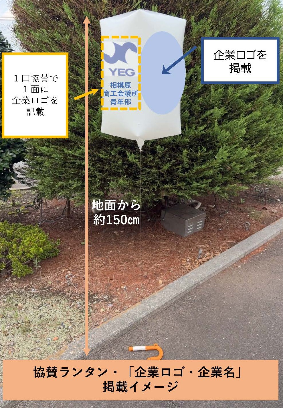 ①装飾ランタンは、協賛者名またはロゴ等の希望素材を掲載します。